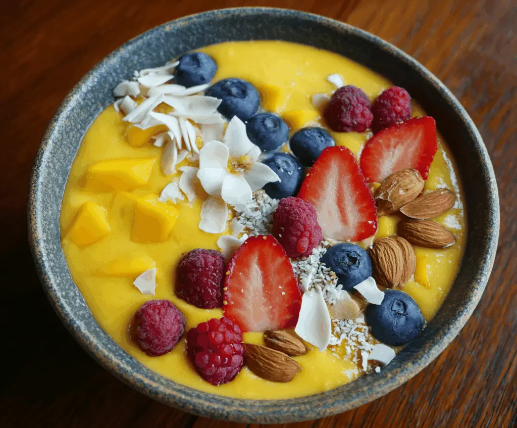 This Mango Smoothie Bowl is a cool, fruity treat with bright mango flavors and a…