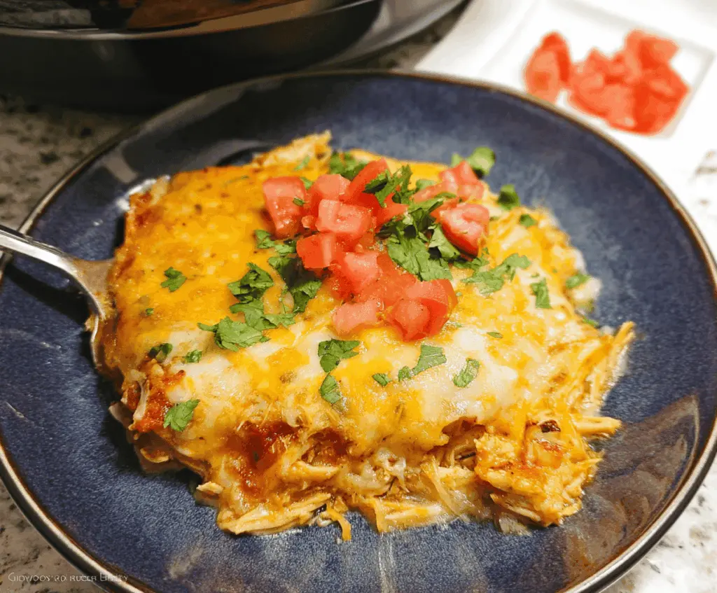 Easy Hearty Crockpot Chicken Enchilada Casserole