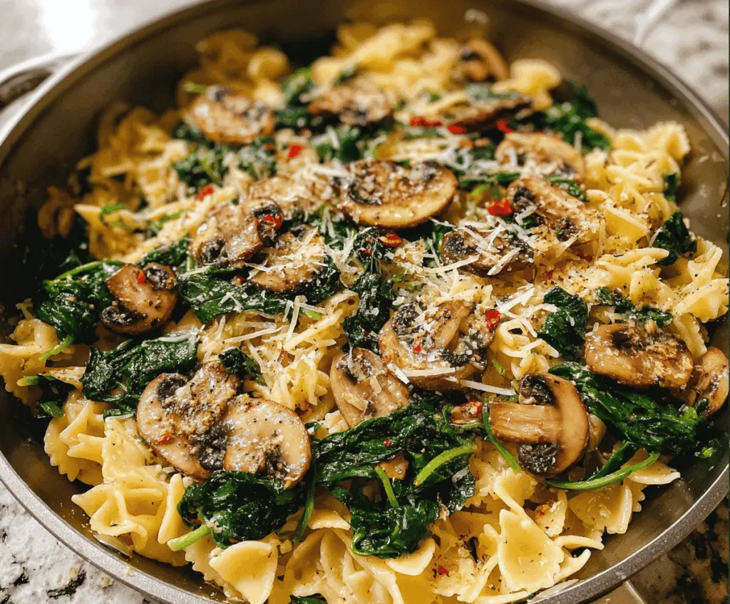 Easy Parmesan Spinach Mushroom Pasta Skillet