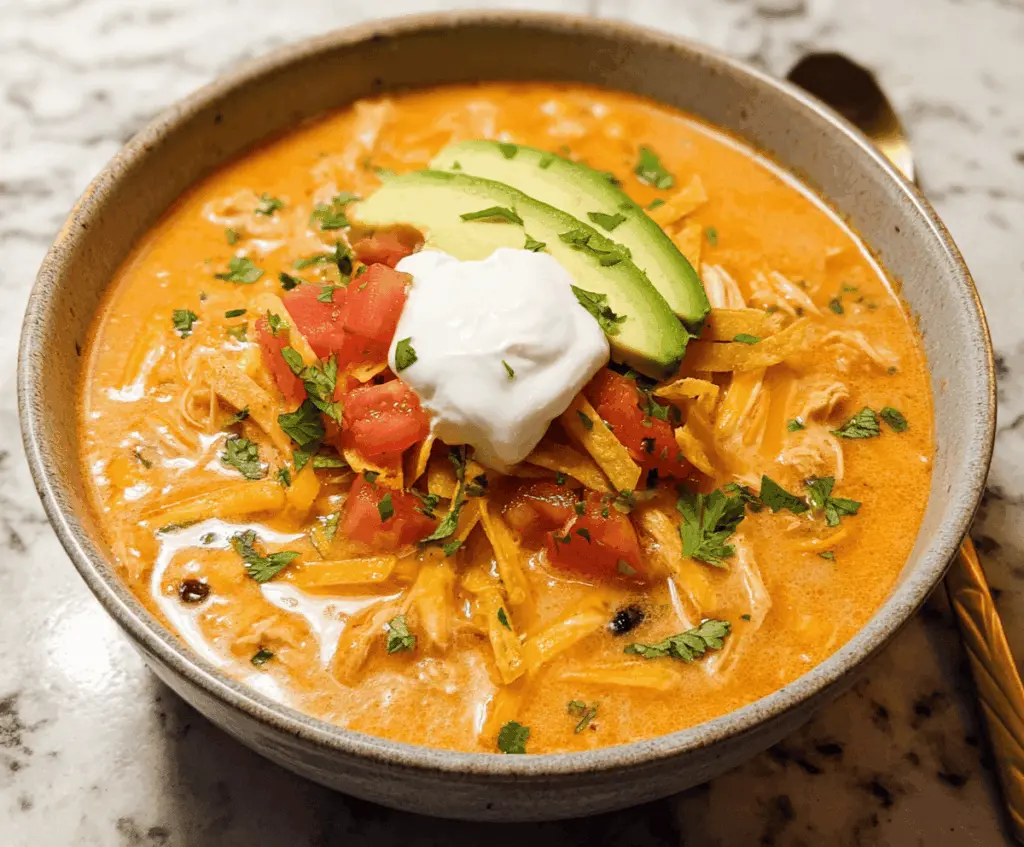 This Creamy Chicken Tortilla Soup is a warm hug in a bowl! Made with tender…
